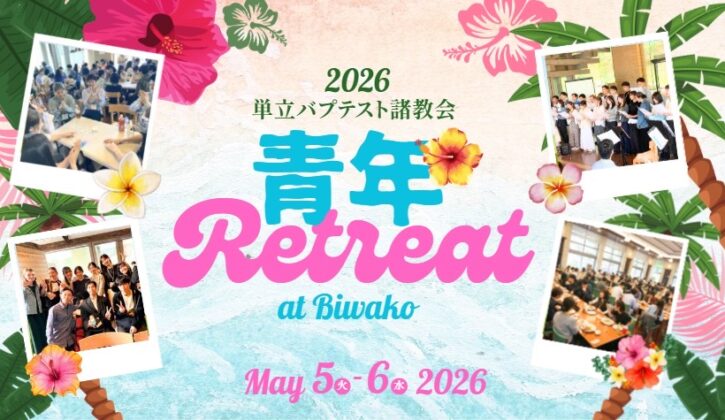 今年も青年リトリートが行われます。全国の単立バプテスト諸教会から青年たちが集い、共に礼拝し、共に交わり、主の恵みに浴するすばらしい機会です。今年もぜひご参加いただき、祝福に満ちたひとときをご一緒に過ごしましょう。詳細案内と申込要項はイメージをクリック!